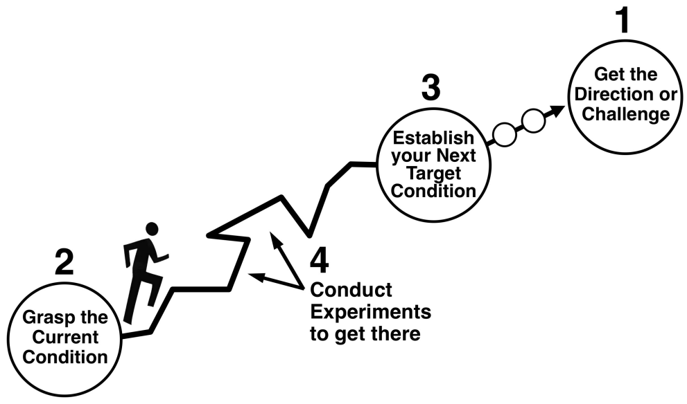 We touched on “experimenting your way to your target condition” which is mentioned in this helpful chart from Toyota Kata: